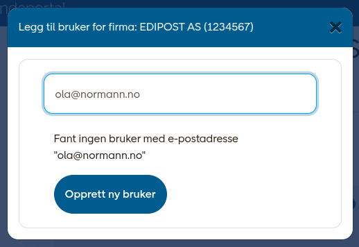 6. Legg inn e-postadressen til den nye brukeren og trykk Opprett ny bruker