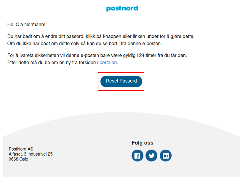 10. Du vil motta en e-post med nytt passord. Åpne e-posten og trykk Reset Passord.